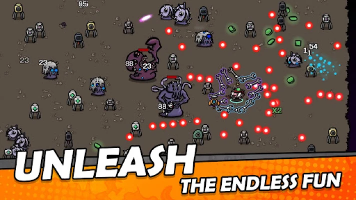 · Collect materials to gain experience and get items from the shop between waves of enemies