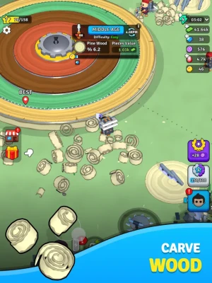 Start in the Stone Age, armed with nothing but primitive tools. Chip away at wood, earn money, and upgrade your blades for sharper cuts, longer durability, and greater precision.