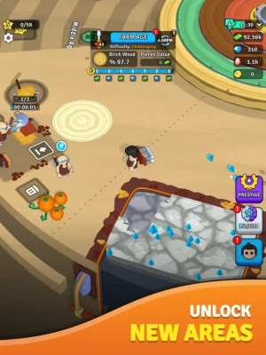 Whether you’re actively managing your upgrades or letting your automated workers handle the load, there’s always something to do around here. Watch your workshop turn into a sprawling production empire, and your pockets fill with wealth as you become the ultimate master carver.