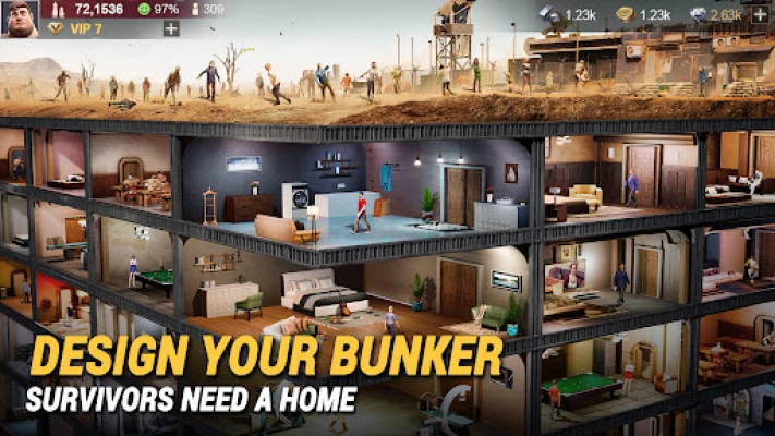 Expand your shelter with numerous facilities such as the Satellite Nexus, Power Generators, the Mission Control, etc. Design the shelter’s layout whichever way you like!