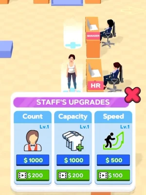 At first, you run the laundry by yourself. But then you need help to cope with the influx of customers and their dirty clothes. Thus, you have to do more than in most of the other cleaning games. You need to manage people for success! Get a HR Specialist to hire first workers. This will help you get rid of your laundry routine and focus on your business. Sometimes you will need to contact the HR department to hire new employees and improve your staff’s hard skills.