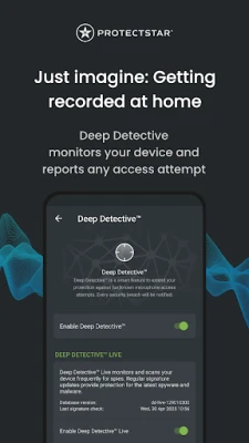 Upgrade from the free edition to Micro Guard PRO and subscripte to unlock Deep Detective™ Live, a real-time anti-spyware scanner designed to detect stalkerware, and spyware that try to access your microphone. The live spyware scanner uses advanced heuristics and a large signature database to help identify both known and new threats.