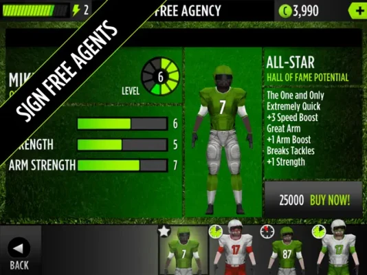 Build your team through free agency acquisitions and train your players to maximize their on-field performance!