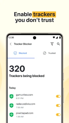 PurePrivacy’s tracker blocker shields your online activity by blocking trackers. Using a local VPN on your device, we intercept and stop tracking requests from apps and websites. No connection to external VPN servers – just pure privacy.