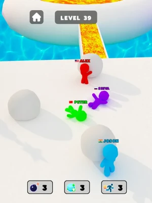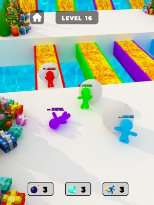 * This race will determine who is the Snow Master! You need to make the snowballs bigger to make way and make the snowballs bigger than other players. Gather the snow around you to make giant snowballs, then make them build ladders and climb up to higher levels. Your opponent will have the same talent, and you will have to race against time and against them.
