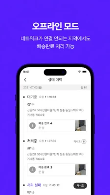 배송 작업자가 배송 업무를 수행하기 위한 앱입니다.
